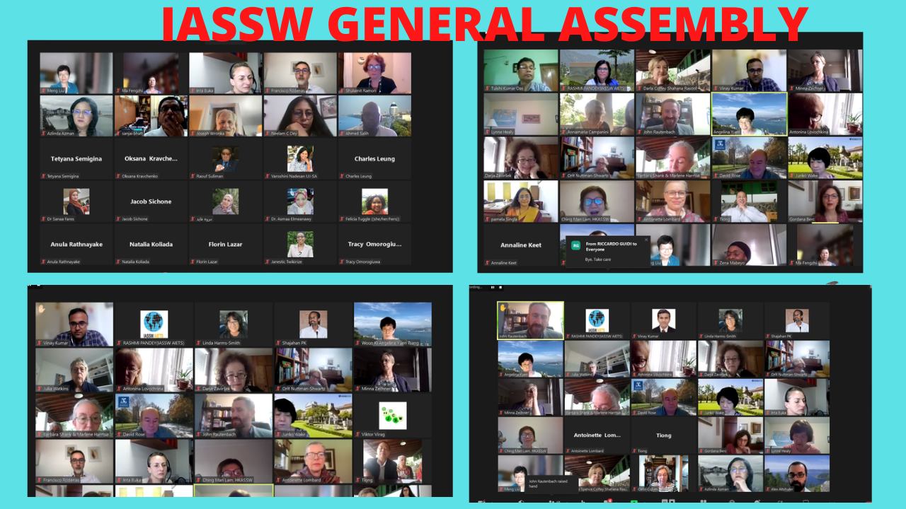 IASSW held its Online General Assembly 2022 on July 13, 2022. It was attended by many members and Board of Directors of IASSW from all five continents/ across the world. Prof. Annamaria Campanini opened the meeting and welcomed all members in the General Assembly. The IASSW Board of Directors presented their reports and updated various activities of IASSW. Members actively participated in the General Assembly and gave various suggestions and feedback.