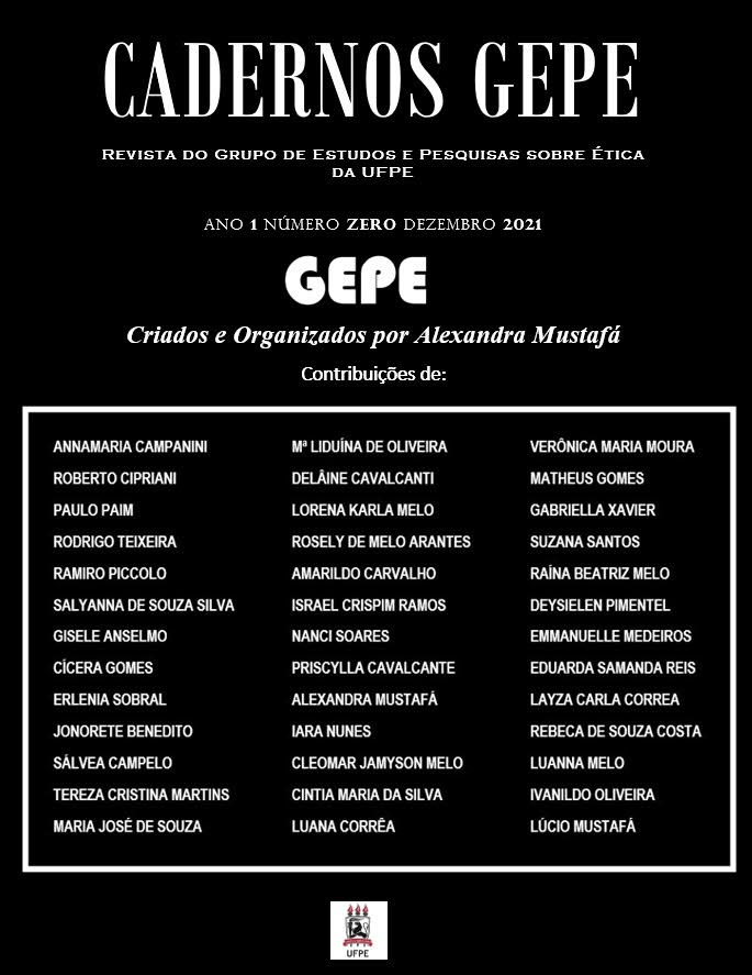It is with great joy that we from the Editorial Committee of Cadernos GEPE, from the Study and Research Group on Ethics at UFPE, inform you that, on December 31, 2021, our new journal was published on the University Journal Portal Federal de Pernambuco – Brazil and, therefore, we congratulate the authors for their excellent contribution.